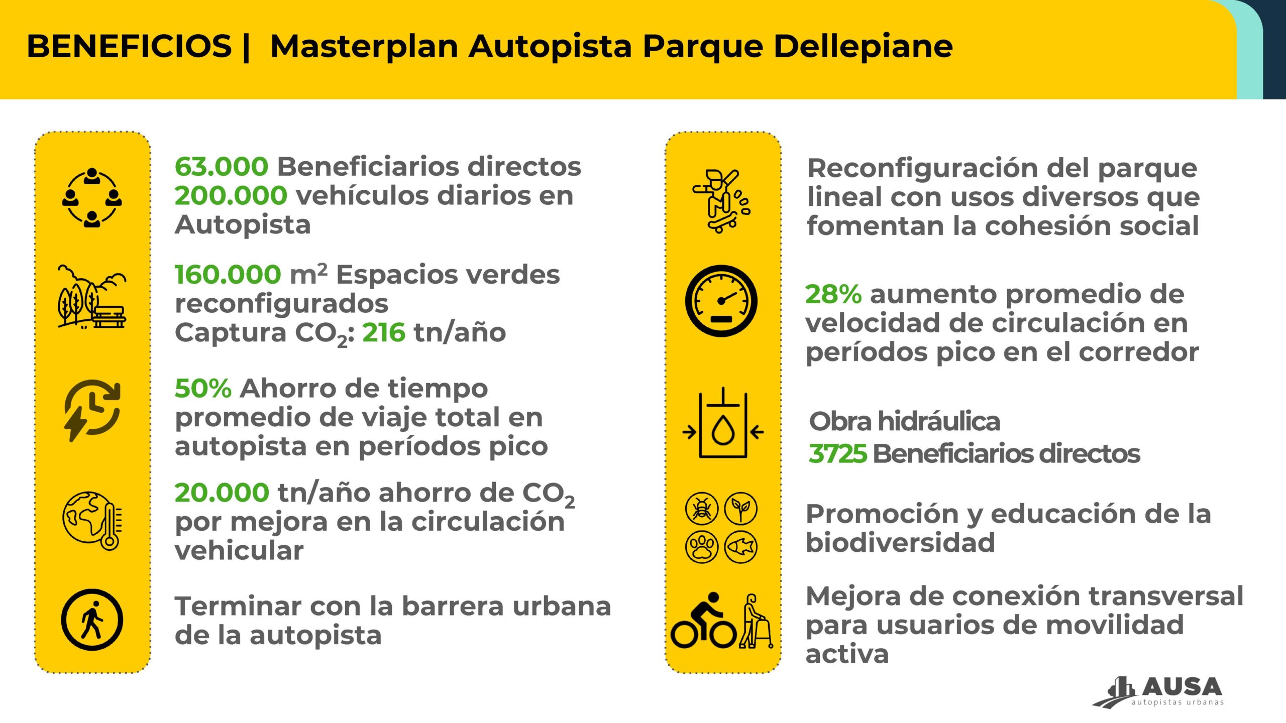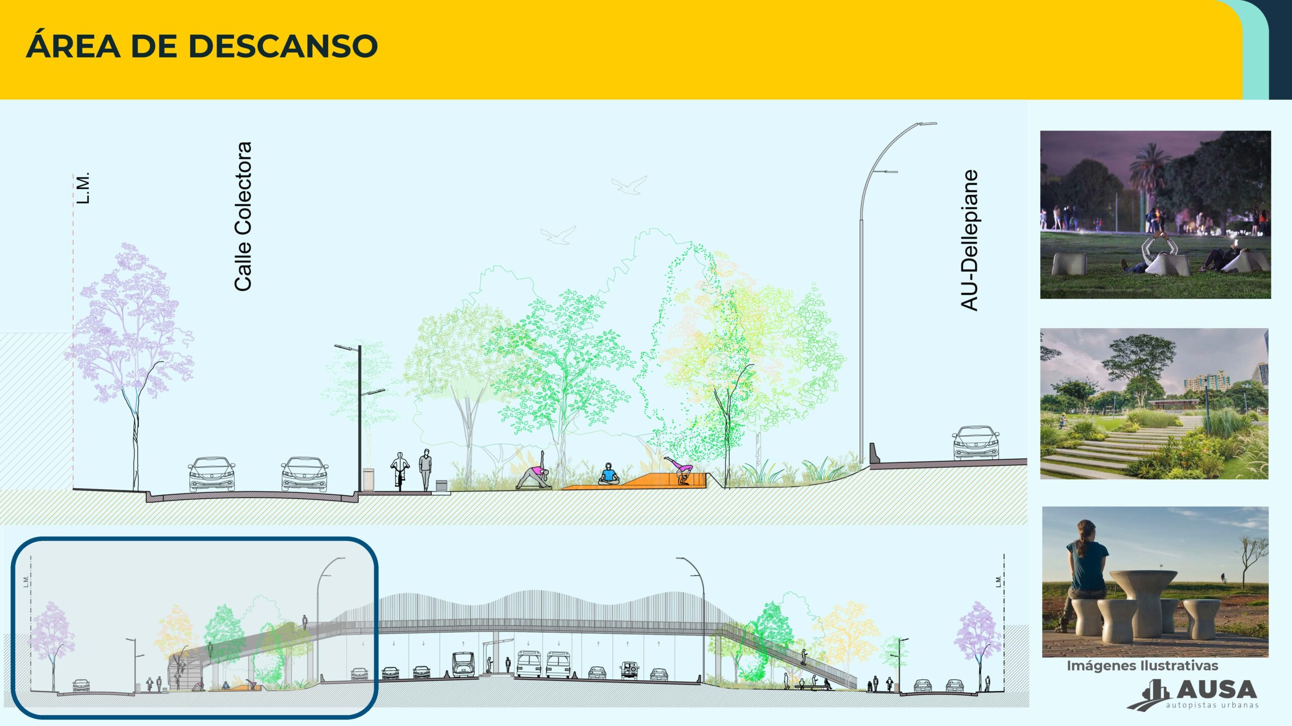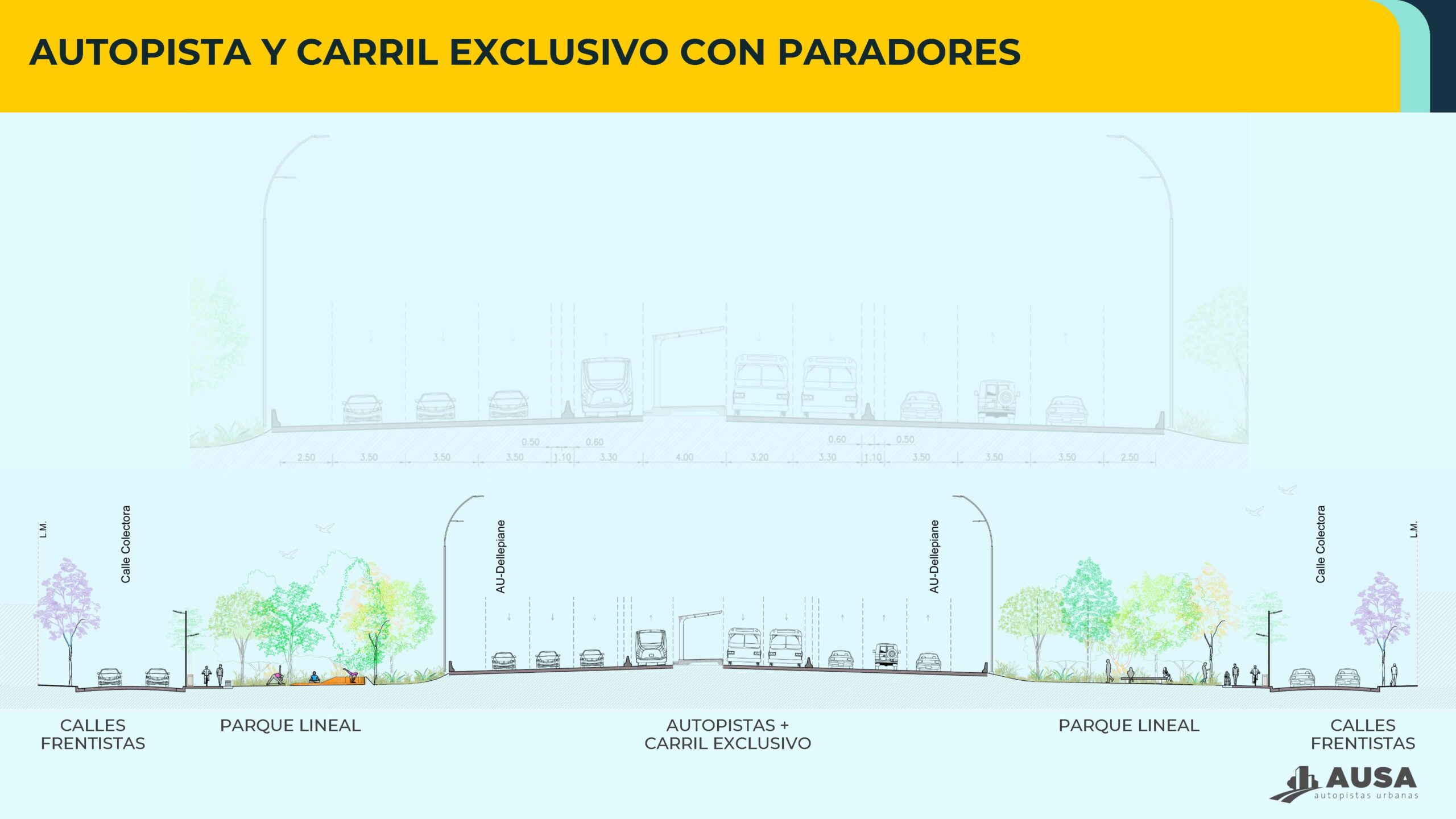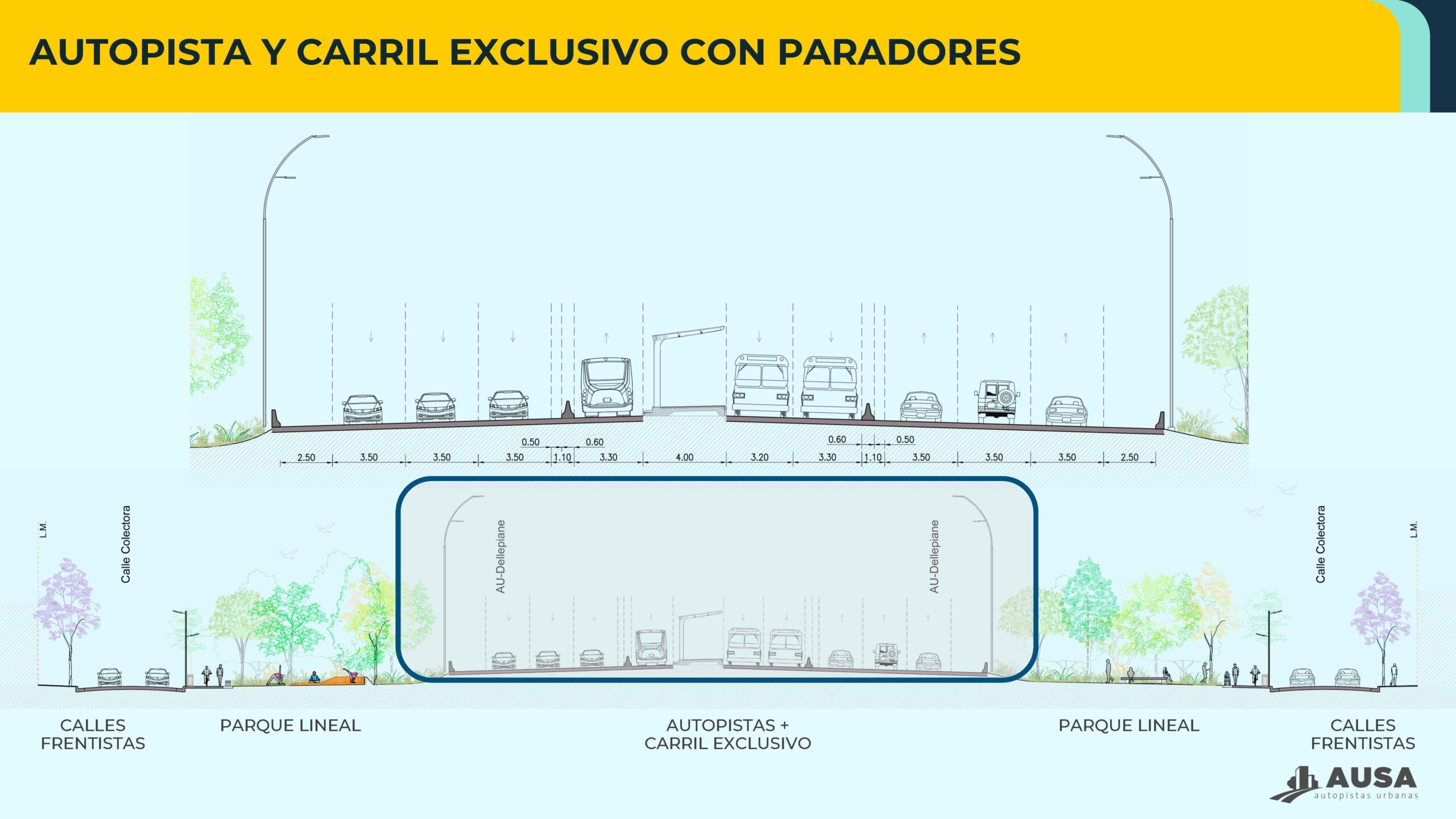 “Master Plan Autopista Parque Dellepiane: Readecuación de traza principal de la Autopista, Carriles Exclusivos APP, Nuevos tramos de colectoras Norte y Sur, refuncionalización de accesos, Ampliación de puente Ferroviario Belgrano Sur, Ampliación de Puente Carretero Rio Negro, Parque lineal. Rubros según normativa: “OPyES1 – Autopistas, autovías y líneas de ferrocarril y subterráneas y sus estaciones. / PVESP – Puesta en Valor de Espacios Recreativos y/o Espacios Verdes / CE – Carriles Exclusivos”, a desarrollarse sobre la traza de la Autopista Dellepiane abarcando desde su cruce sobre la Av. Gral. Paz hasta el Peaje Dellepiane, en la conexión de la traza con las Autopistas 25 de Mayo y Perito Moreno (Área según CUR 1 y 2). Polígono delimitado por las coordenadas POSGAR07 GCABA según Informe N° 20352635-GCABA-DGEVA/24, con una superficie de 634.730,00m2 bajo la titularidad de la firma AUTOPISTAS URBANAS S.A