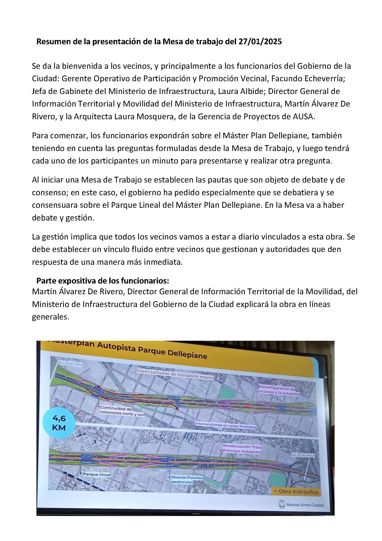 Resumen de la presentación de la Mesa de trabajo del 27/01/2025