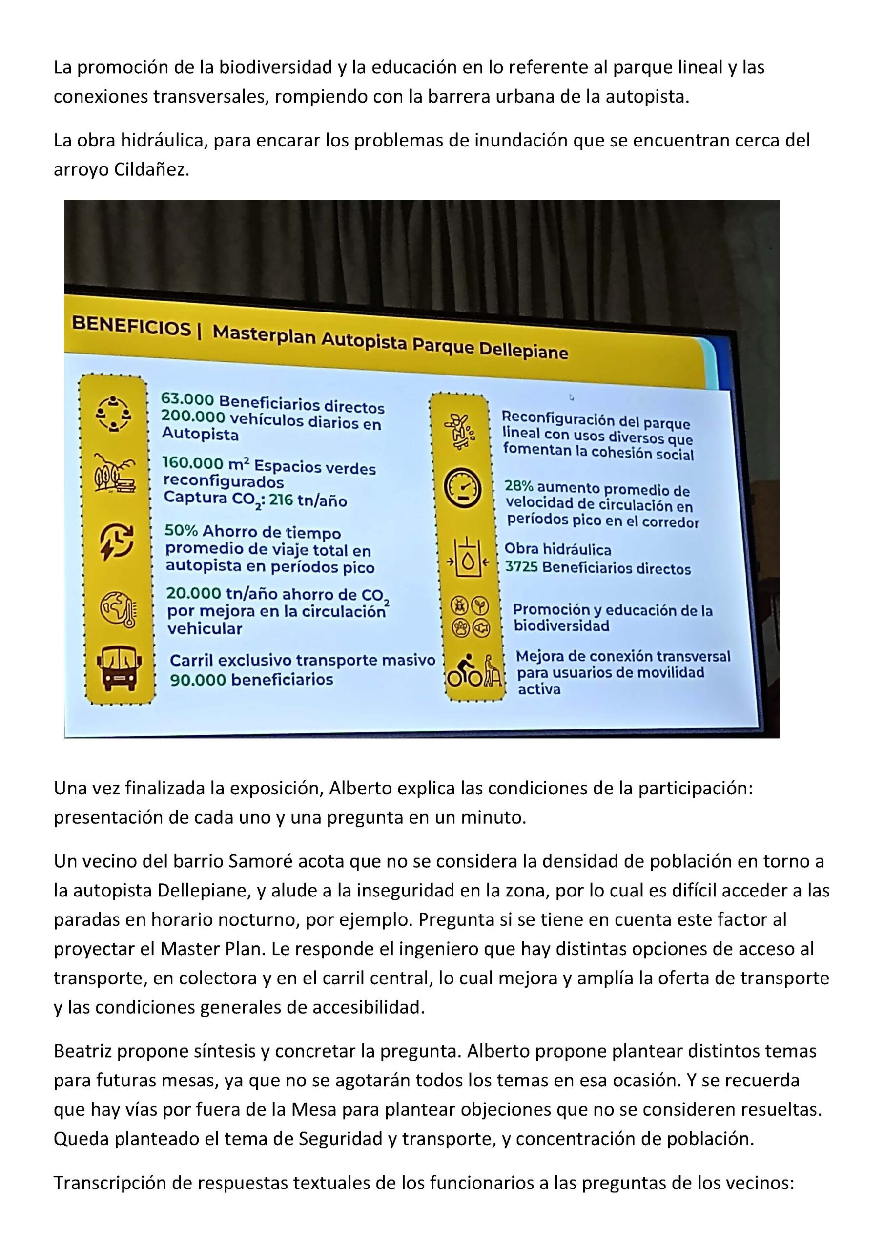 Obsérvese que en este documento buscan la validación del proyecto atribuyendo a los vecinos ciertos "planteos" que en realidad no son de ellos sino que estuvieron planteados por AUSA desde el inicio.