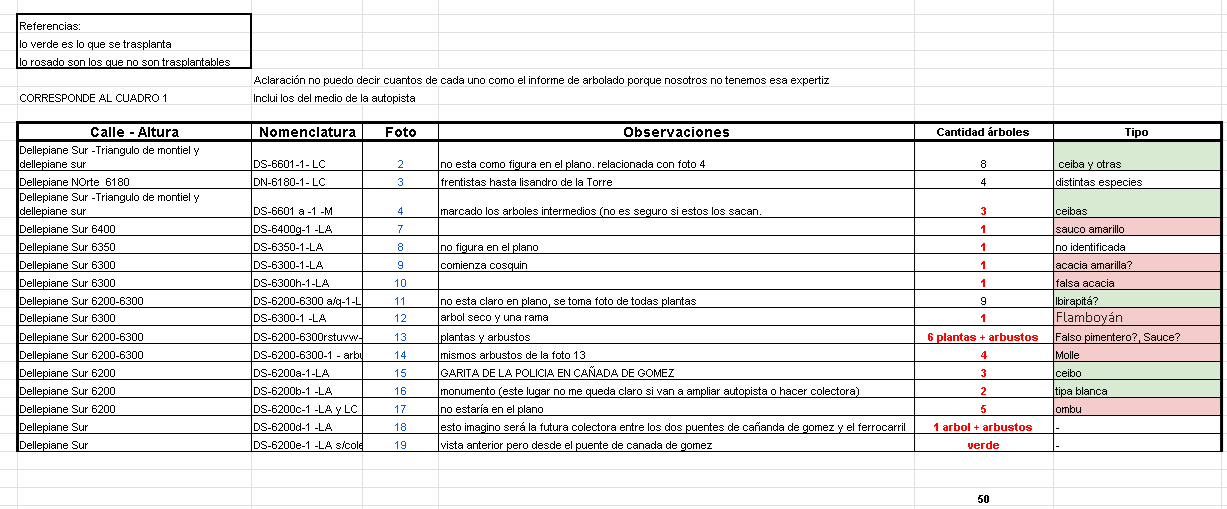 Relevamiento del arbolado Master Plan Dellepiane (4.5 km) realizado por la Mesa de Trabajo Consenso y Gestión C8.