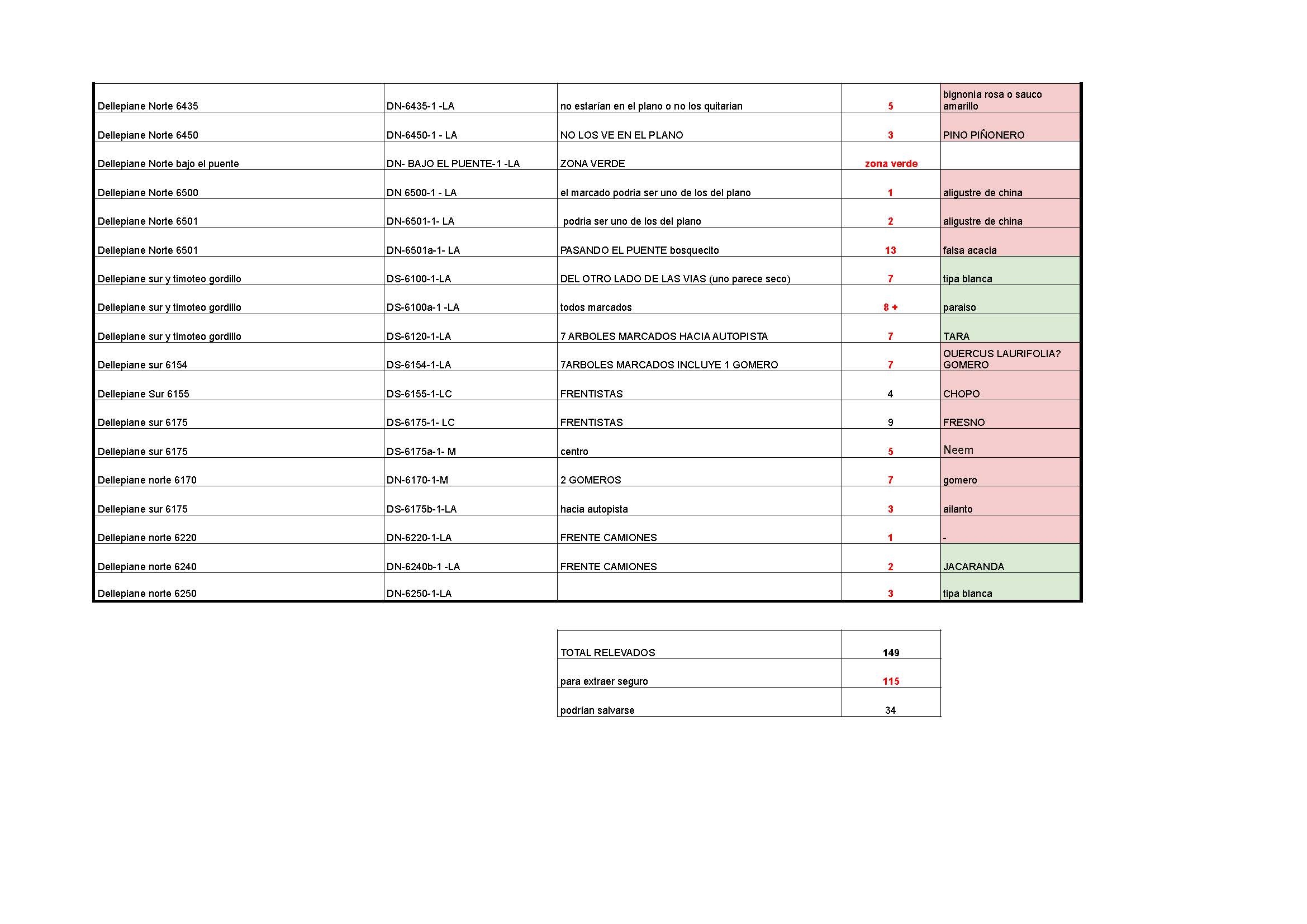 Master Plan Dellepiane - Planilla de relevamiento de árboles